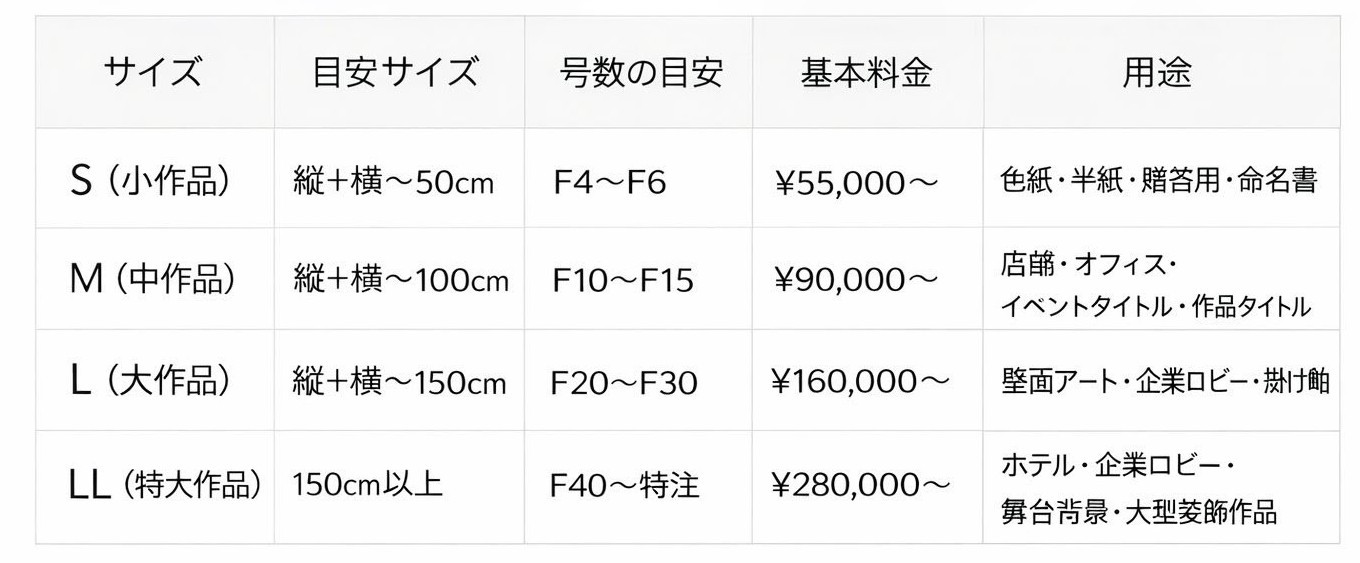 ■ 基本料金目安 (サイズ別) ※制作のみ 額装、表具は別途料金